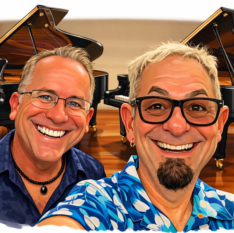 With experience performing on cruise ships, in piano bars around the world, and at premier dueling piano venues throughout California, they deliver high-energy, audience-driven shows where guests become part of the experience through song requests, sing-alongs, and interactive entertainment.