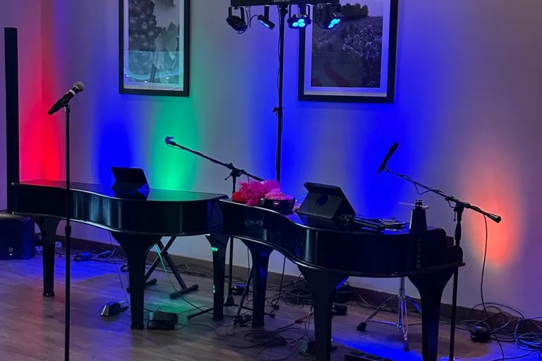 We've performed in all kinds of spaces - ballrooms, backyards, breweries, restaurants, warehouses, and more. As long as we can set up two pianos and a sound system, we can make it work. Share your venue details with us and we'll let you know if it's feasible.